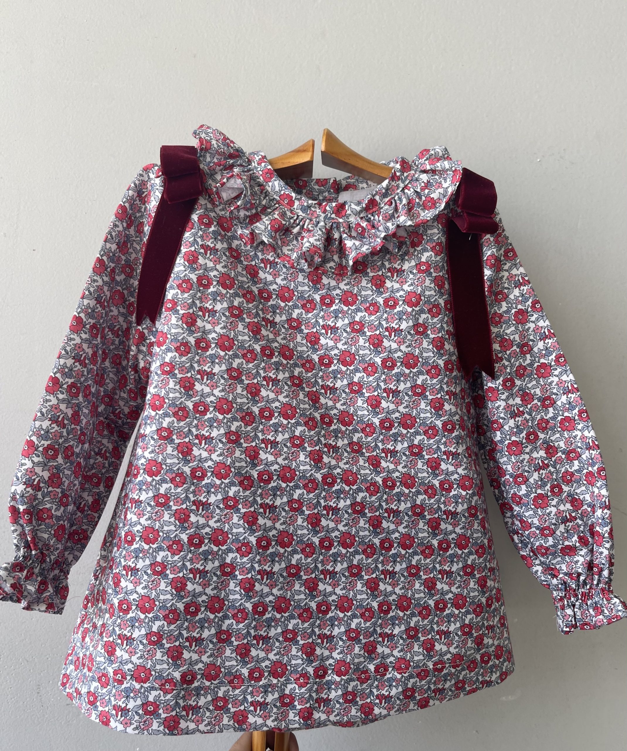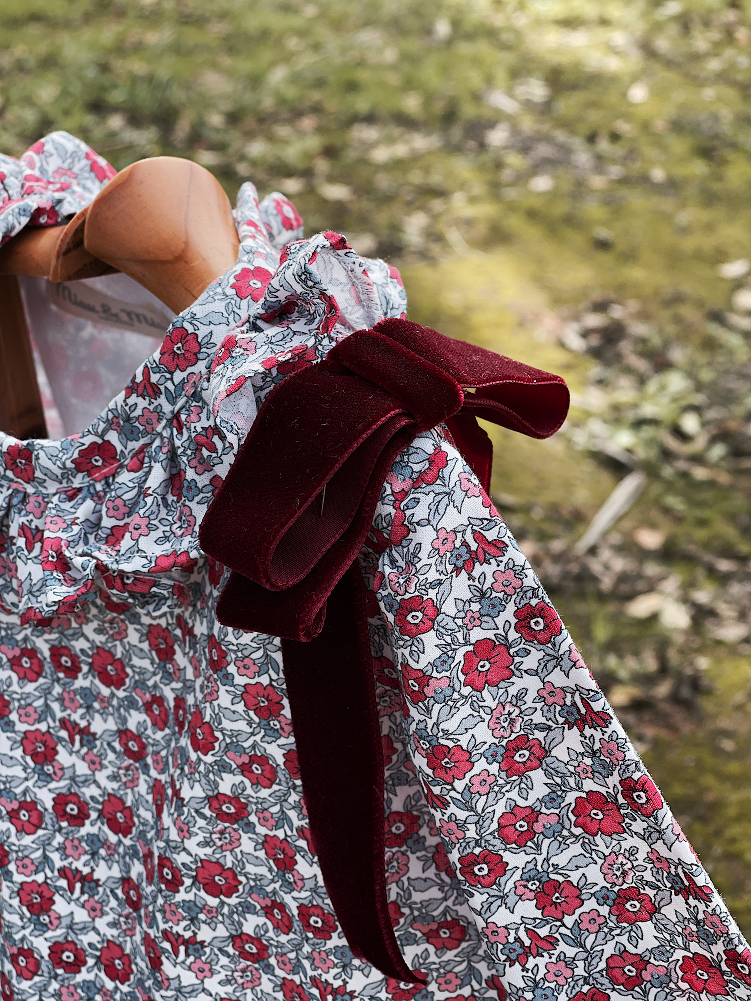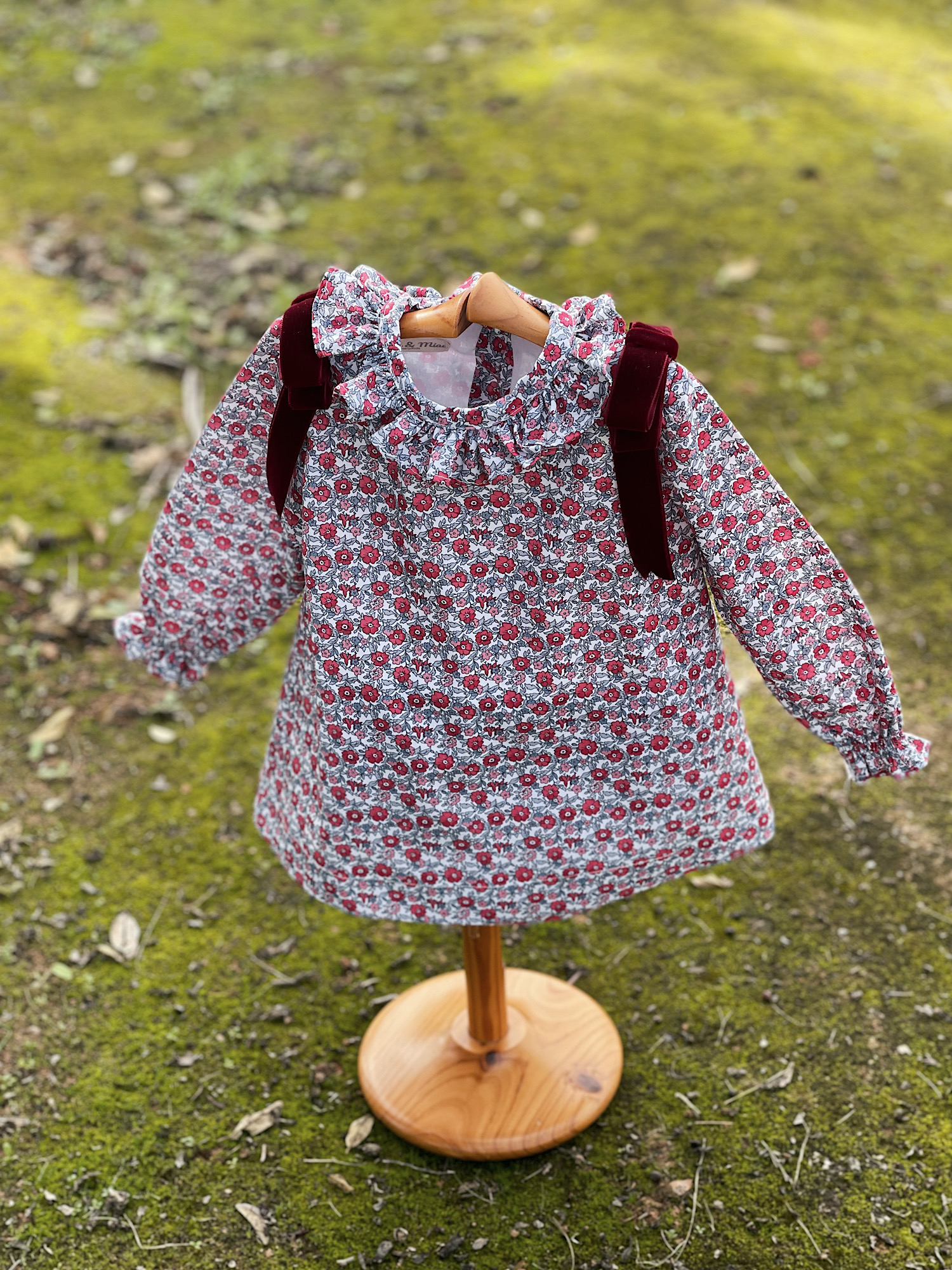Jesusito Marita, colección limitada Navidad. Estampado liberty con lazos en burdeos en terciopelo. Lleva su braguita a juego.