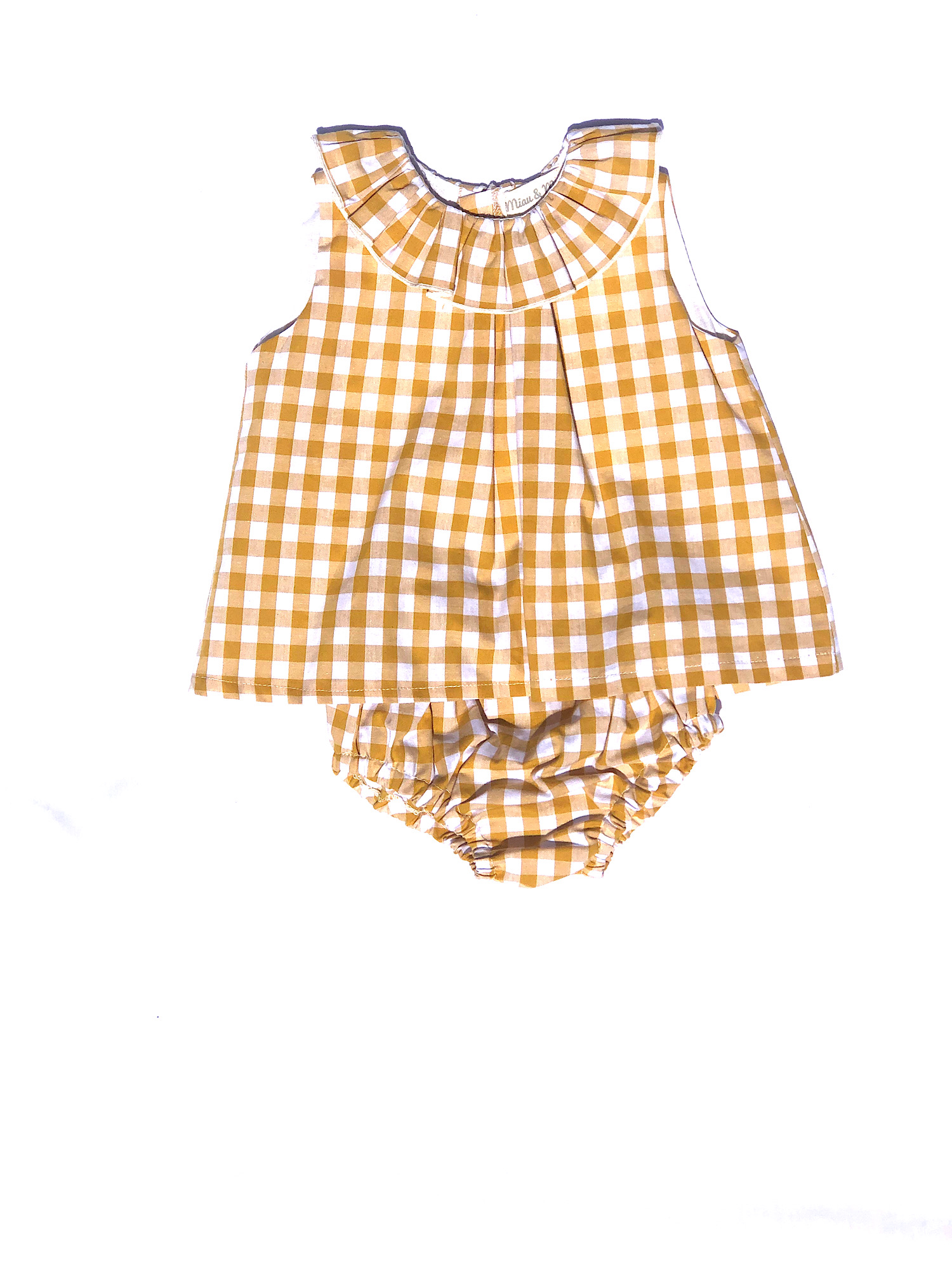 Jesusito con braguitas incluidas a juego, tejido 100% algodón lleva cuello redondo y va abotonado por la espalda.