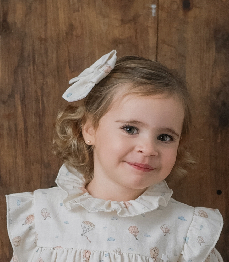Lazo con pinza para el pelo de estampado globos.