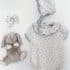 Bonito pelele con detalle cuello y flor baby blue, va forrado y con mangas farol. La capota no se incluye.