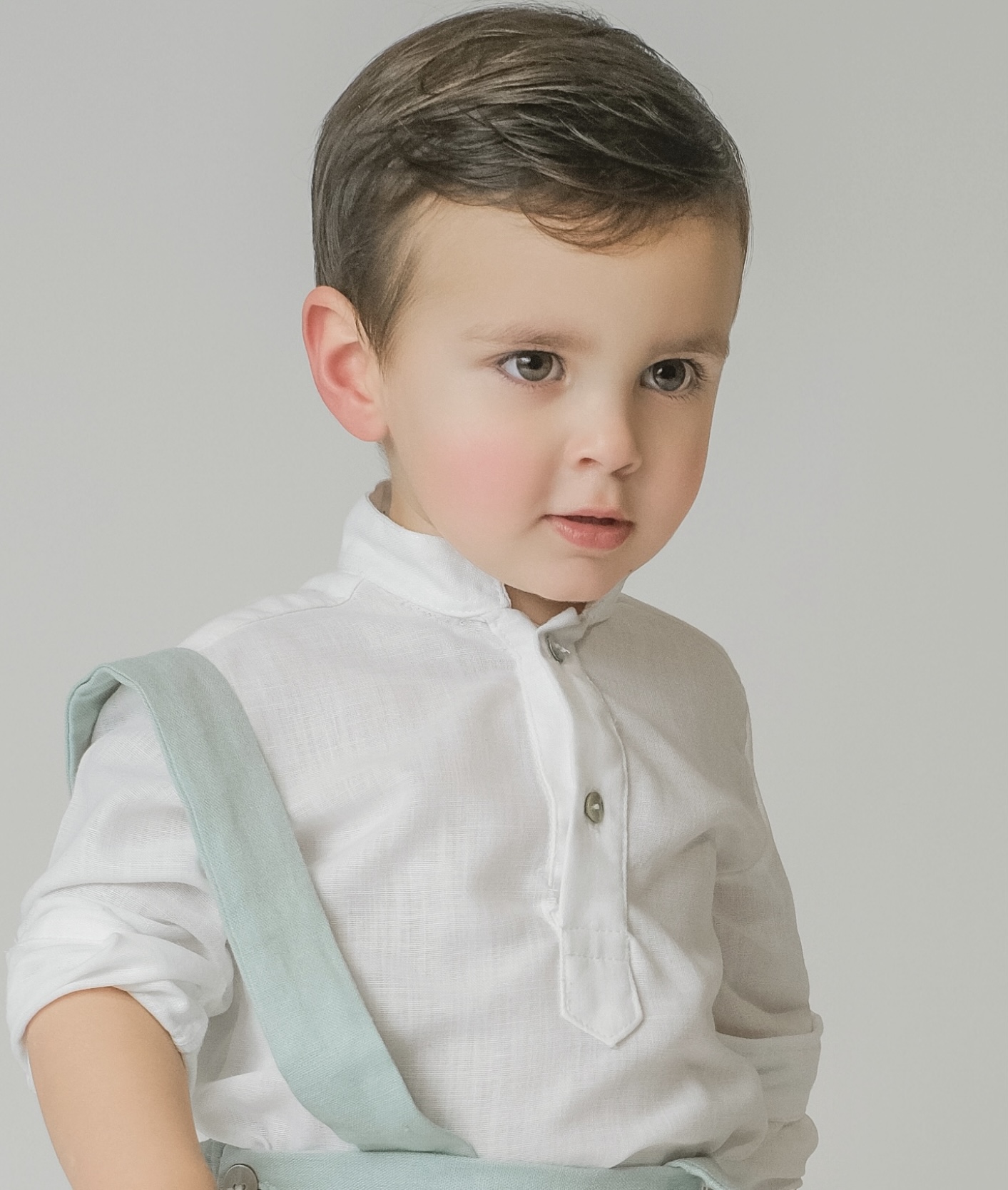 Polera de Lino blanco, va abotonada con media tapeta y un precioso cuello mao.