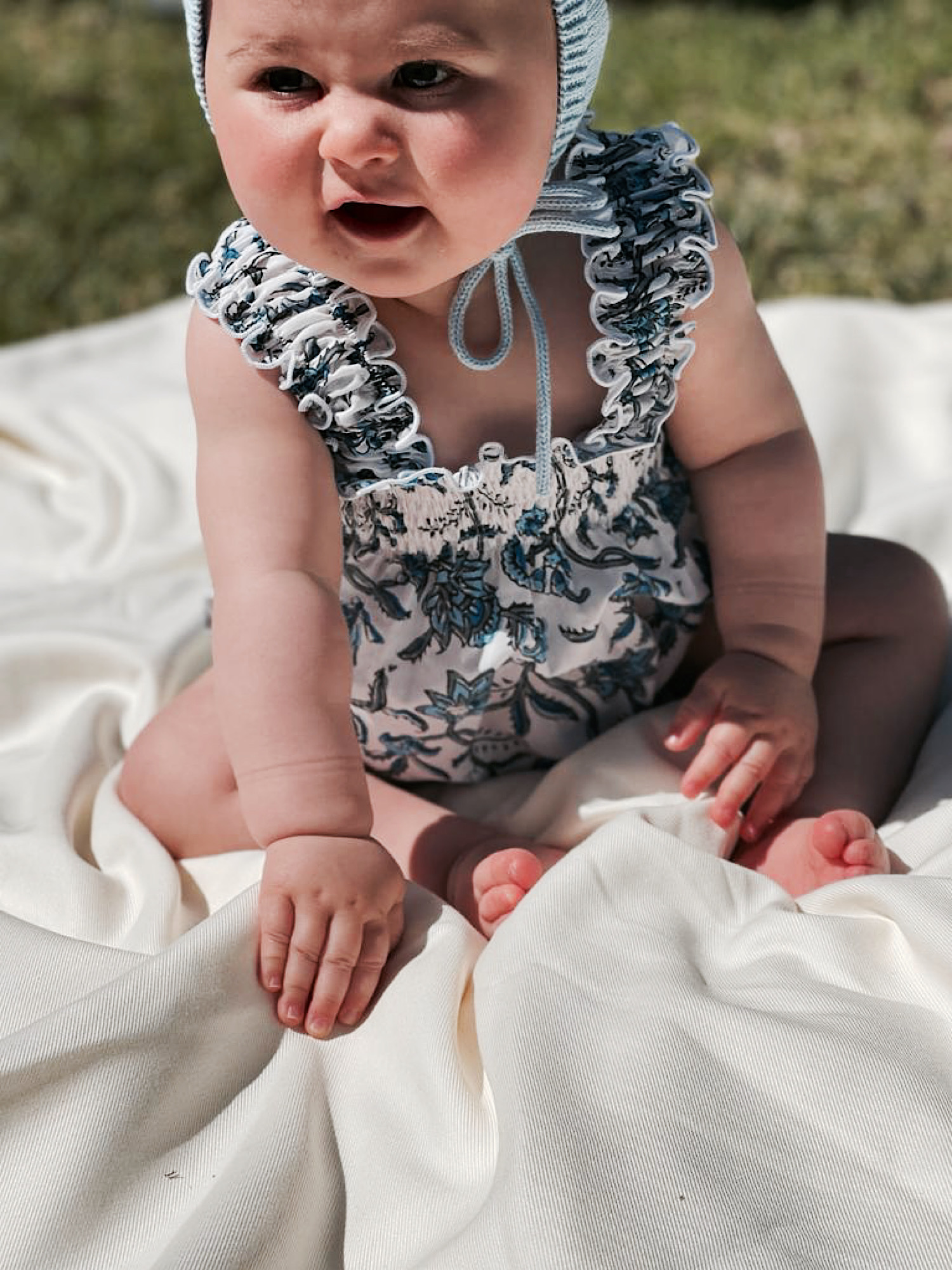 Ranita fruncida tonos celeste, tejido de algodón, muy cómoda y fresquita para nuestras peques, prenda duradera Gracias a sus tirantes elásticos. Tallan acorde a la edad.
