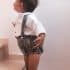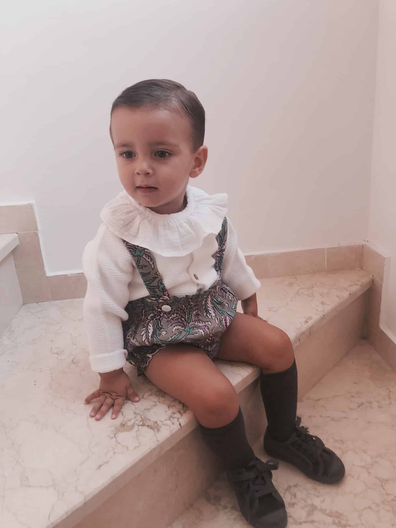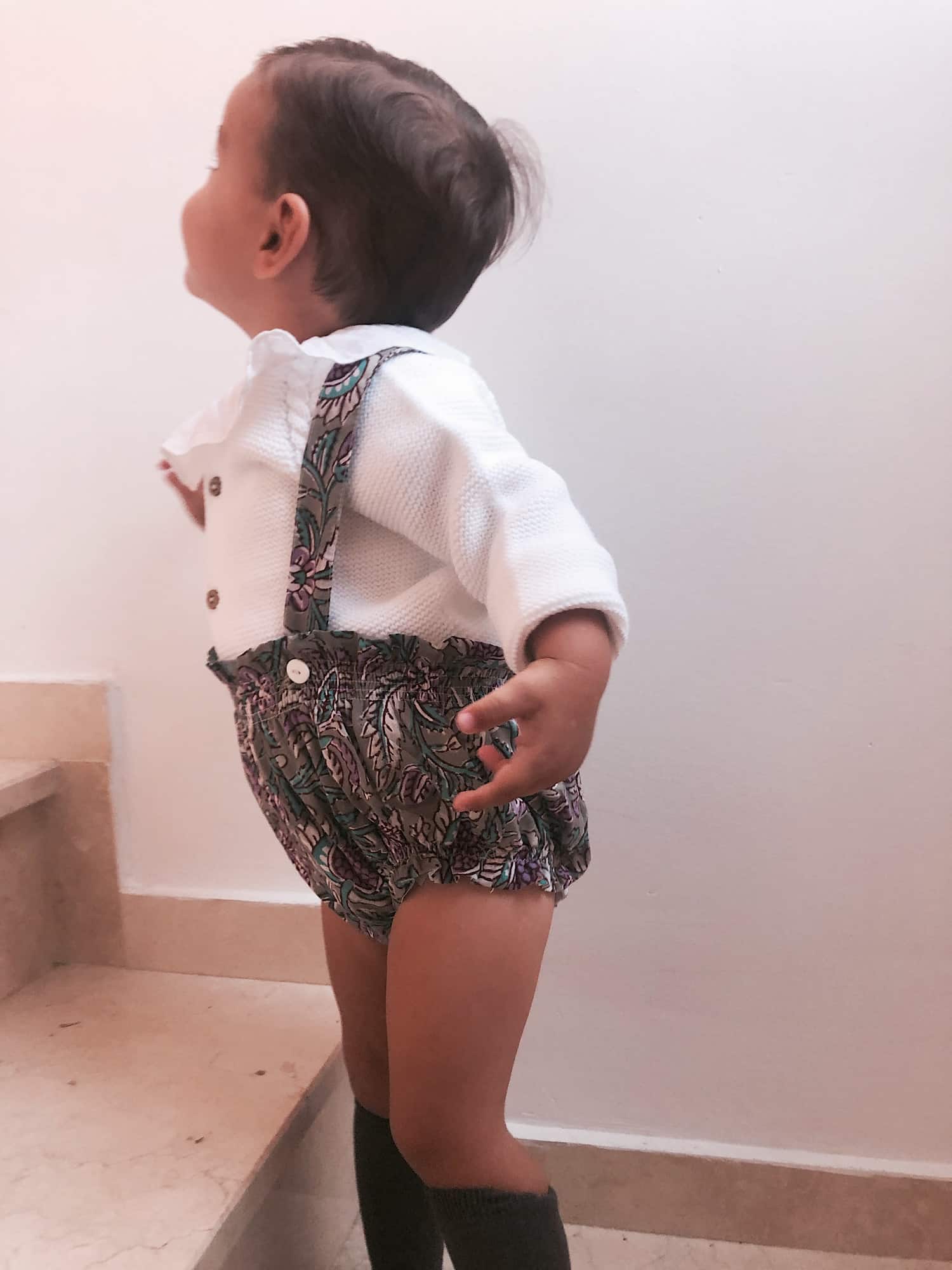 Ranita con tirantes tonos grises y malvas, va forrada y es totalmente unisex.
