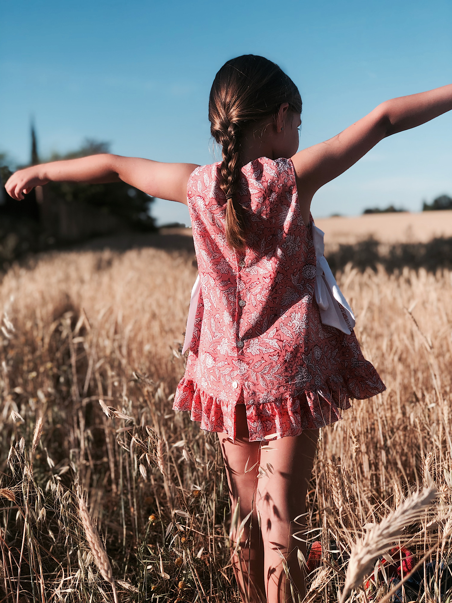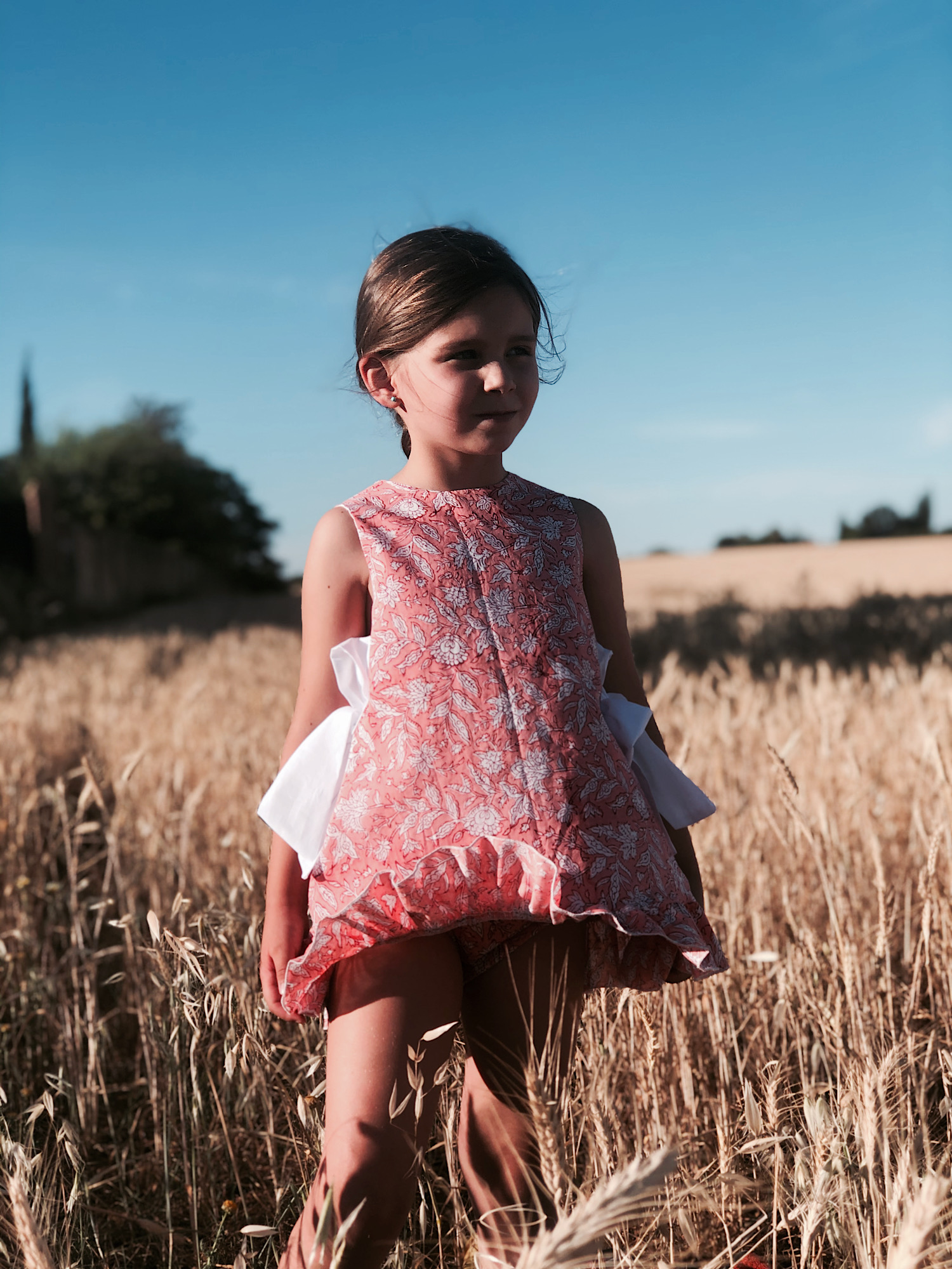 Vestido cortito con estampado coral con dos lazadas a cada lado y braguitas a juego 100% algodón, tela fina fresquita, va forrado. lavar en agua fría. Tallan bien