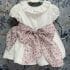 Vestido de Lino forrado con delantal de flores ( se puede poner o quitar), tallan a la edad y hasta 3 años incluye braguitas.