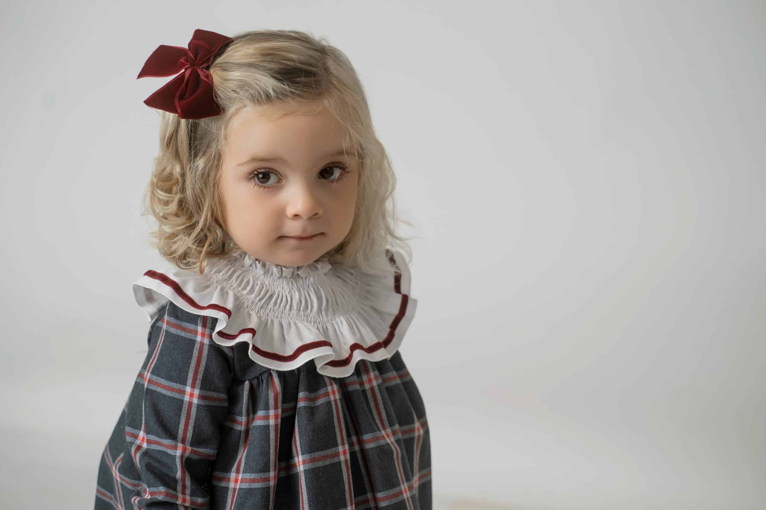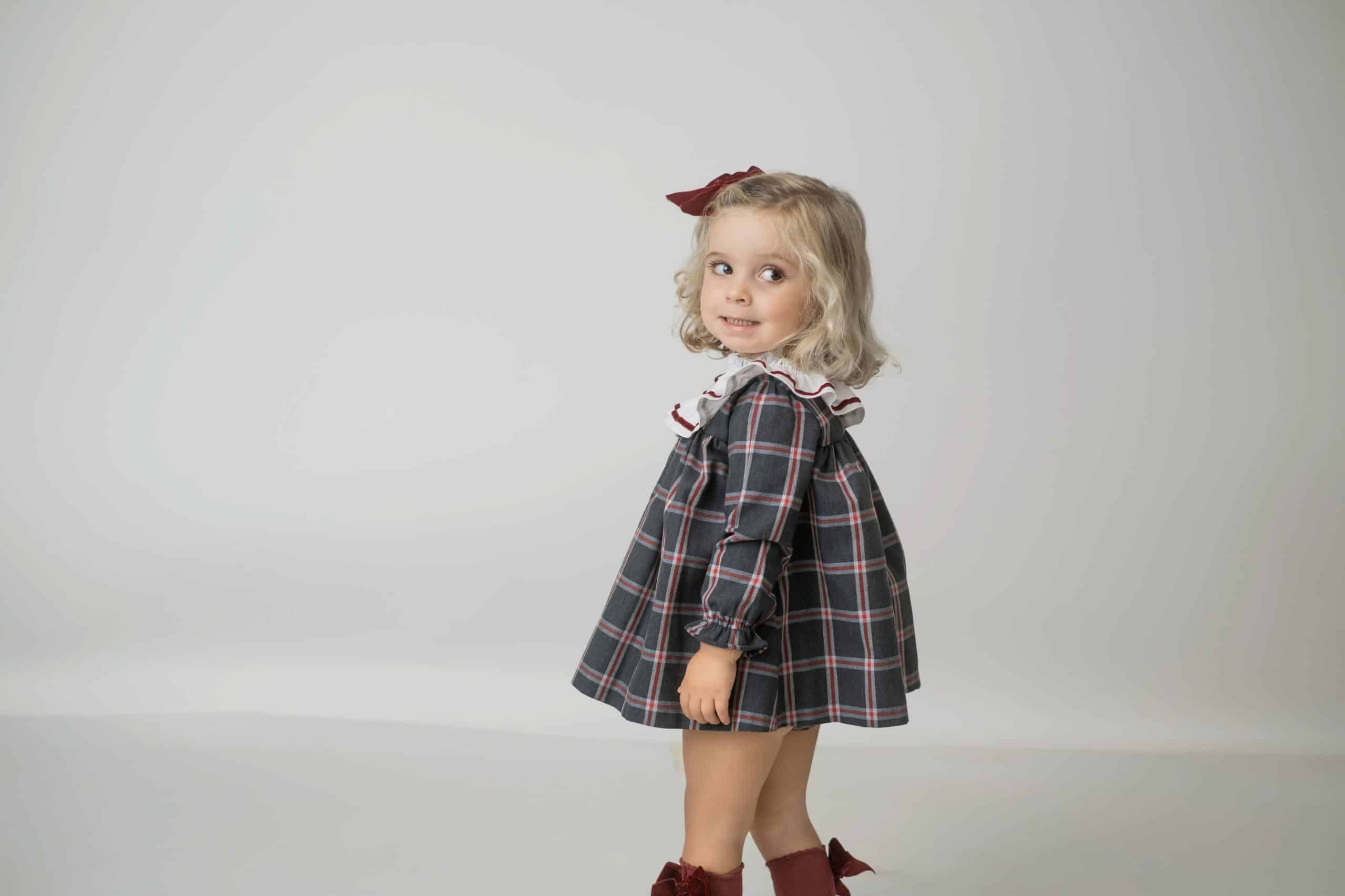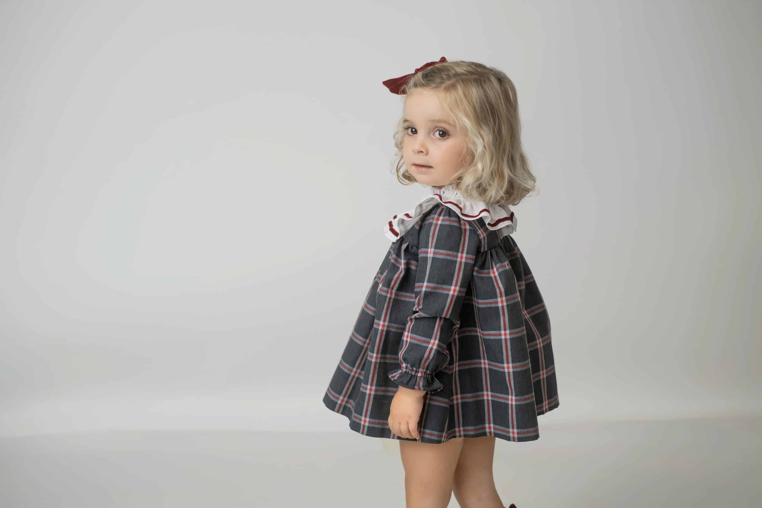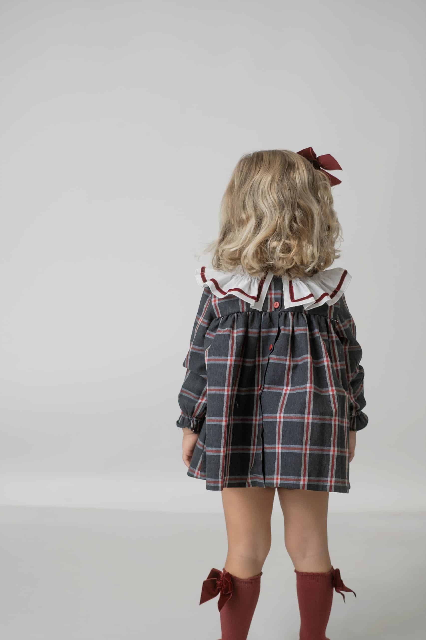 Vestido cuadros Tartán con bonito cuello fruncido y detalle en terciopelo burdeos.